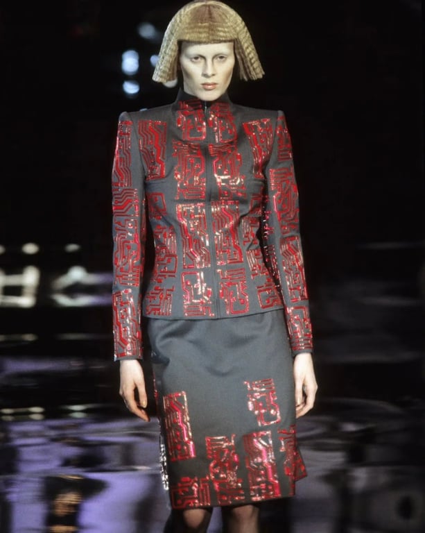 Актриса Зендея, сыгравшая фрименку Чани в "Дюна 2", поразила футуристическим образом на премьере фильма в Сеуле. Она выбрала для себя винтажный серый костюм из осенне-зимней коллекции Alexander McQueen 1999 для Givenchy.